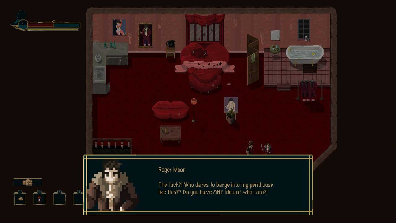নোয়ার ফিল্ম থেকে নেওয়া একটি গল্পের সাথে ভূমিকা-পালন ঘরানার সংমিশ্রণ, সেইসাথে পিক্সেল আর্ট ভিজ্যুয়াল ইফেক্টের ব্যবহার, সেই ধারণাগুলির মধ্যে একটি যা সত্যিই প্রশংসনীয়। কিন্তু গুরুত্বপূর্ণ বিষয় হল এই উপাদানগুলিকে কীভাবে একত্রিত করা যায়, ভাগ্যক্রমে বিকাশকারী সিরিয়াল গেমস তার প্রথম অভিজ্ঞতায় এই সংমিশ্রণটি ভালভাবে রাখতে পারেনি। এটির একটি খুব আকর্ষণীয় আখ্যান রয়েছে এবং গল্পটিতে 40 এবং 50 এর দশকের একটি ক্লাসিক গোয়েন্দা চলচ্চিত্রের সমস্ত ক্লিচড চরিত্রগুলি অন্তর্ভুক্ত রয়েছে: নায়ক হিসাবে একজন মাতাল গোয়েন্দা, একটি সংবাদপত্রের ছেলে যে গোয়েন্দার অধীনস্থ এবং তথ্যদাতা এবং এমনকি একজন প্রলোভনশীল মহিলাও এই গোয়েন্দা সঙ্গে একটি অস্পষ্ট অতীত আছে.
