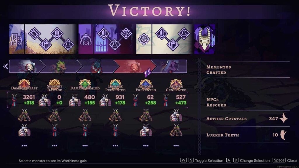 অনন্য মেকানিক্স এবং ভূমিকা ব্যবস্থা উদ্ভাবনী, যা একটি দানবকে পথের উপর নির্ভর করে সম্পূর্ণ ভিন্নভাবে আচরণ করতে দেয়, এটিকে আকর্ষণীয় করে তোলে। এই বৈশিষ্ট্যটি ডেভেলপারের Monster Sanctuary-তেও ব্যবহার করা হয়েছিল, কিন্তু এবার এটি একটি rogue-এর মতো বিন্যাসে প্রয়োগ করা হয়েছে। অসুবিধার স্তরটি মোটামুটি উচ্চ। তুমি তোমার তালিকা থেকে দানবদের সাথে বহন করতে পারো, এবং প্রতিটি দানবের ভূমিকা ব্যবহার করার সাথে সাথে তুমি এগিয়ে যেতে পারো।