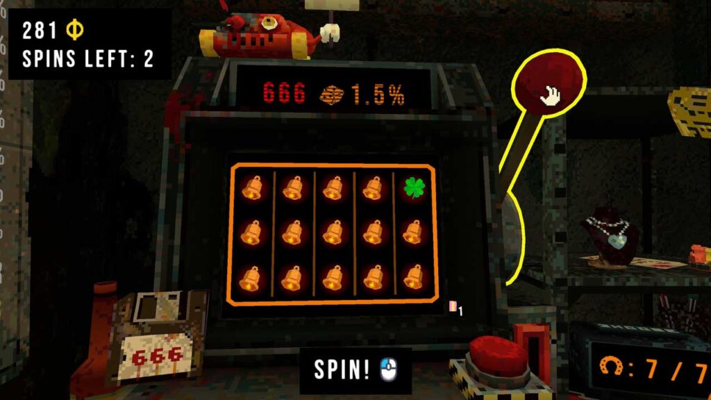 গল্পের জন্য, ক্লোভারপিট এমন একটি গেম যেখানে আপনি একটি কারাগারে বন্দী রয়েছেন যেখান থেকে আপনি আপনার ঋণ পরিশোধ না করা পর্যন্ত বের হতে পারবেন না এবং এর কারণে, আপনি স্পিনিং স্লট মেশিনের অন্তহীন নরকের অভিজ্ঞতা লাভ করেন। ডেভেলপাররা আপনাকে একটি নোংরা ঘরে রেখে গেছে একটি মেশিন এবং একটি ফোনের রিং বাজছে খারাপ খবর, এবং ভিত্তিটি সহজ: আপনার ঋণ পরিশোধ করুন বা “দেউলিয়া হয়ে যান”…আক্ষরিক অর্থেই৷