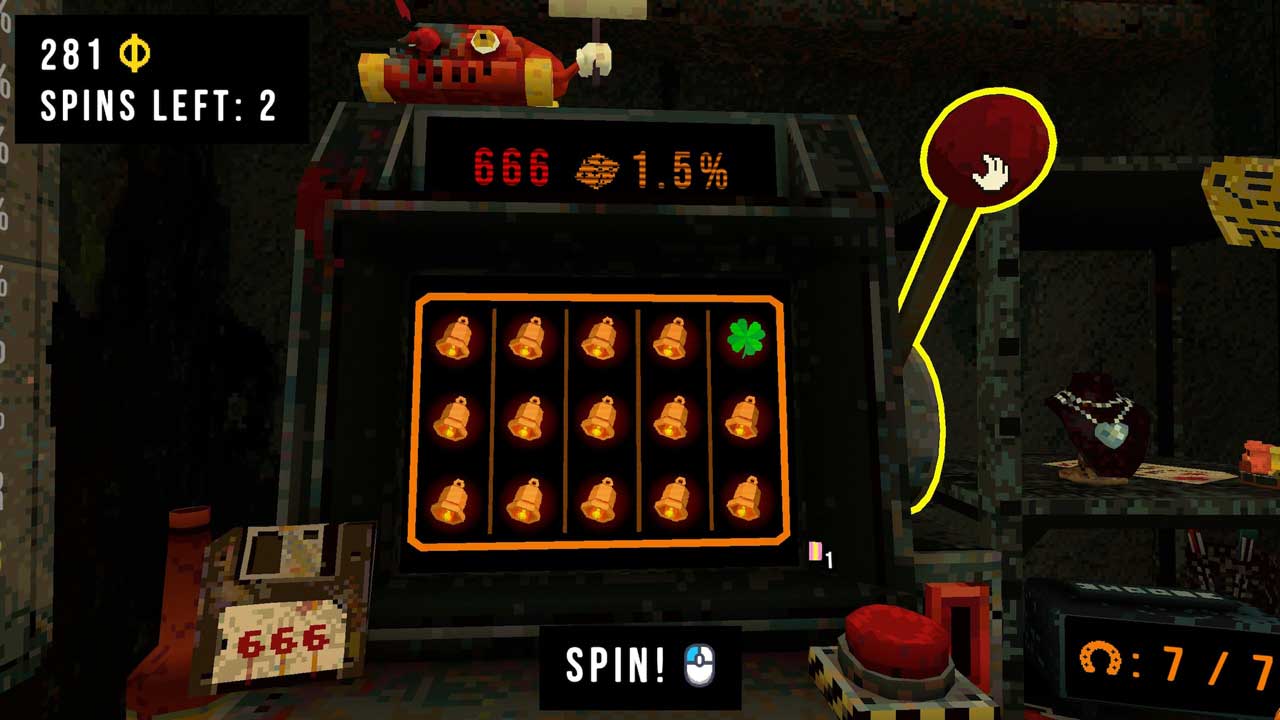 ক্লোভারপিট স্লট মেশিনের উপাদানগুলিকে রোগুলাইক উপাদানগুলির সাথে একত্রিত করে। স্টিম পৃষ্ঠার বর্ণনা অনুসারে, এটি একটি পৈশাচিক খেলা বালাট্রোর গেমপ্লে এবং বাকশট রুলেটের পরিবেশ দ্বারা অনুপ্রাণিত। যদিও আমি এখনও পরেরটি খেলিনি, শুধুমাত্র দুটি ছবি তুলনা করলে প্রভাব দেখায়।