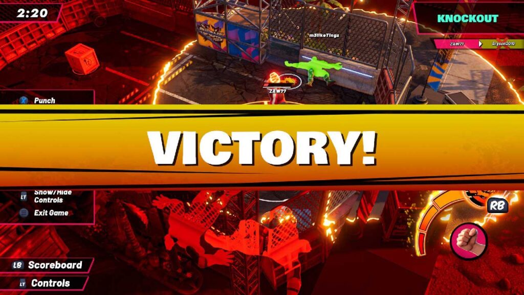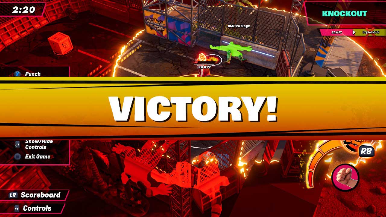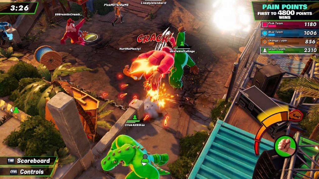 গেমপ্লেটি গ্রুপ বিটডাউনের উপর ফোকাস করে যা চারজনের চারটি দলে খেলা হয়। ক্রেট গ্র্যাব, রেজ ব্যাঙ্ক এবং পেইন পয়েন্টের মতো সীমিত মোড রয়েছে, যার মধ্যে কিছু টিমওয়ার্কের উপর ফোকাস করে, অন্যরা আপনাকে সম্পূর্ণ একা ছেড়ে দেয়। অবশ্যই, নক আউট নামক একটি মোড আছে, যা যুদ্ধ রয়্যালের মতো, যা আমি মনে করি আপনিও পছন্দ করবেন। এটিতে প্রবেশ করা খুব সহজ তবে আয়ত্ত করতে সময় এবং দক্ষতা লাগে।