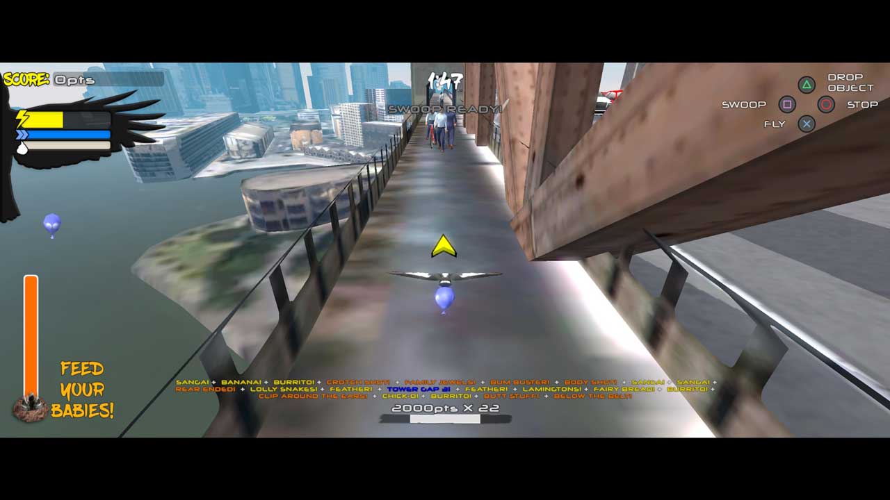 গেমটির সাথে আমার একমাত্র সমস্যা হল নিয়ন্ত্রণগুলি, যা কম ধীর বোধ করা প্রয়োজন (ঘূর্ণন দীর্ঘ সময় নেয়, যা একটি পাখির জন্য অস্বাভাবিক) এবং ম্যাগপাইদের মাথা কোথায় নির্দেশ করছে তা দেখানোর জন্য এটির জন্য সত্যিই এক ধরণের লক্ষ্য বিন্দুর প্রয়োজন, কারণ এটি মনে হতে পারে যে আপনি সোজা ডাইভ করছেন কিন্তু আপনি লক্ষ্যবস্তুতে পুরোপুরি আঘাত করতে পারেন না অথবা আপনি শেষ পর্যন্ত কিছুতে আঘাত করেন। এছাড়াও, ডাইভ নিয়ন্ত্রণগুলি ভয়াবহ। আপনি যেখানে ডাইভ করতে চান সেখানে একটি ছোট বিন্দু যোগ করুন, যা ধীর গতির পতনশীল UI এর মতো।