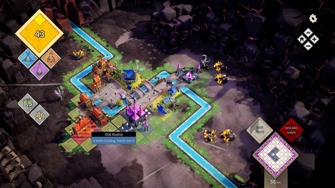 গেমটির স্বাচ্ছন্দ্যপূর্ণ গতি আমার বিশেষ পছন্দ হয়েছে – কোনও ধ্রুবক বিশদ ব্যবস্থাপনা বা সম্পদ মজুদ ছিল না। তুমি তোমার সময় নিতে পারো, গেমের মেকানিক্স বোধগম্য, কিন্তু তবুও তোমাকে আগ্রহী রাখার জন্য যথেষ্ট গভীরতা প্রদান করে। একই রঙের ভবনের চতুর স্থান নির্ধারণ এবং সমন্বয়ের জন্য অতিরিক্ত পয়েন্ট দেওয়া হয়।