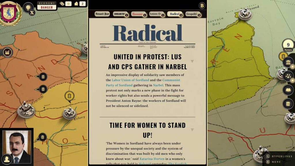 আপনাদের মধ্যে যারা বিষয়বস্তুর প্রতি প্রয়োজনীয় আগ্রহ রাখেন, তাদের জন্য সুজেরেইন আনন্দের। মূল গেমপ্লেটি একটি রাজনৈতিক সিমুলেটর এবং একটি জাতি-নির্মাতা উভয়ই, যেখানে সর্ডল্যান্ডের রাষ্ট্রপতি হিসাবে আপনার ভূমিকা জাতির জন্য আপনার দৃষ্টিভঙ্গি পূরণের জন্য নির্বাহী সিদ্ধান্ত গ্রহণ করে। এটা সহজ শোনাচ্ছে, কিন্তু রাজনীতি সহজ নয়। দেশজুড়ে বিশেষ আগ্রহগুলি আপনার মনোযোগ এবং অনুগ্রহের জন্য প্রতিযোগিতা করে, সমান পরিমাপে তোষামোদ এবং হুমকি দেয়। যদি তুমি খুব বেশি আপস করো, তাহলে তুমি তোমার নিজের লক্ষ্যকে বিপন্ন করবে। যদি তুমি একেবারেই আপস করতে অস্বীকৃতি জানাও, তাহলে তারা তোমার সরকারকে পঙ্গু করে দেবে। স্থবির অর্থনীতি, যুদ্ধরত বিশ্বশক্তি এবং অভ্যন্তরীণ অস্থিরতার কারণে এই উত্তেজনা আরও তীব্র হয়। এটি “দ্য ওয়েস্ট উইং”-এর একটি বিশেষভাবে আকর্ষণীয় পর্বের মতো।