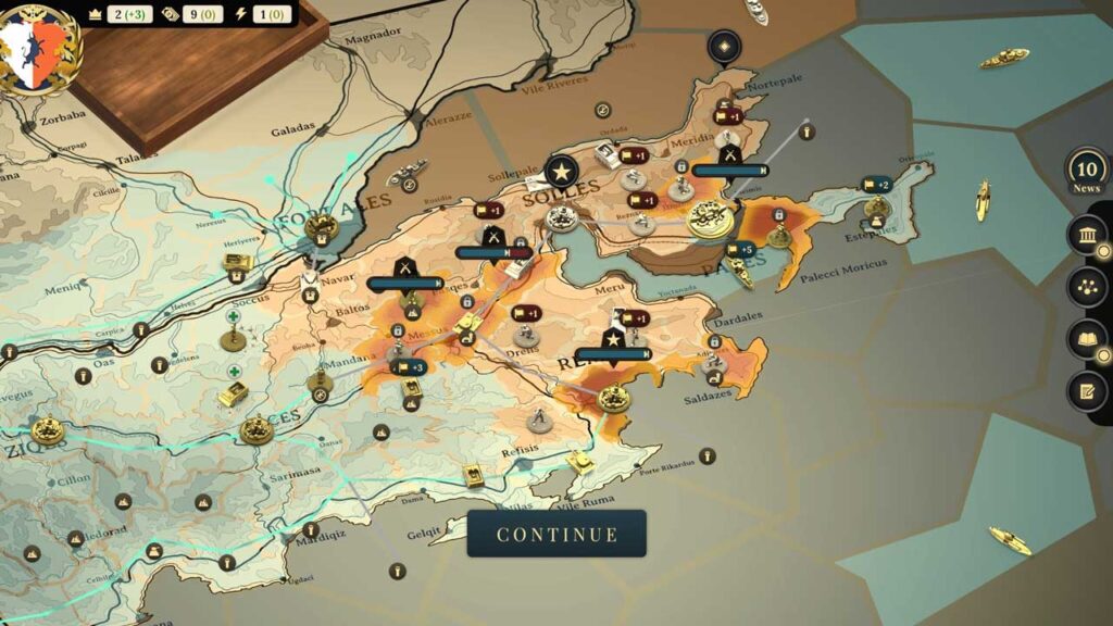 গেমপ্লে সম্পর্কে, সুজেরেন আমাকে আনন্দের সাথে অবাক করেছে। আপনি কোনও শহর আক্রমণ বা রক্ষা করার জন্য পৃথক ইউনিট নিয়ন্ত্রণ করেন না। আপনি মানচিত্রের চারপাশে লোকদের স্থানান্তর করেন না। কথোপকথন শুরু করার জন্য আপনি প্রতিটি রাজনীতিকের নামের উপর ক্লিক করেন না। আপনি একটি পালা শেষ করার জন্য ক্লিক করেন না। গল্প শুরু হয়, সভা হয়, আপনি কীভাবে প্রতিক্রিয়া জানাবেন তা সিদ্ধান্ত নিয়ে আপনার ভূমিকা পালন করেন, তারপর আপনি (অথবা বরং, সংবাদপত্রগুলি পড়েন) কীভাবে ঘটনা ঘটে তা দেখেন।