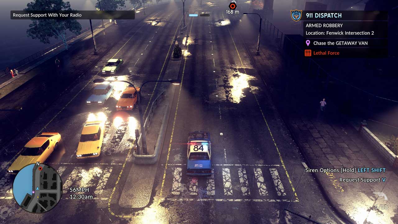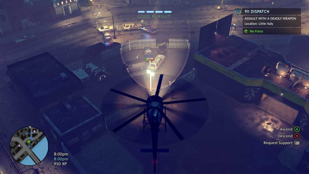“The Precinct” গেমটিতে আমরা বেশিরভাগ সময় টহল দেওয়ার জন্য ব্যয় করি। তিনটি বিকল্প আছে: পায়ে হেঁটে, গাড়িতে এবং হেলিকপ্টারে। পরেরটি মূলত অপরাধীদের সন্ধানে উড়ে যাওয়া, আলো দিয়ে তাদের জ্বালিয়ে রাখা এবং ব্যাকআপের জন্য ডাকা। এটি মূলত সবচেয়ে নিরাপদ এবং কম উত্তেজনাপূর্ণ বিকল্প – খুব বিরক্তিকর নয়, বরং বেশ উত্তেজনাপূর্ণ। আমরা বাকি টহলগুলি একটি নির্দিষ্ট অংশে পরিচালনা করি। যখন কোনও কল বা অন্যান্য পরিস্থিতি দেখা দেয়, তখন আমরা তাদের অনুসরণ করার জন্য একা ছেড়ে দিতে পারি।